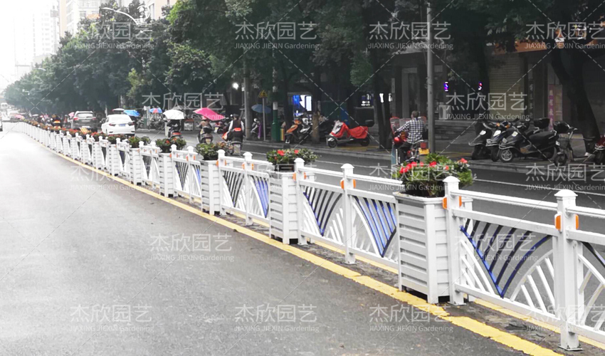 可以根据场地实际选择。道路较宽的,可以选择护栏和花箱一列式。道路较窄的,可以选择护栏和花箱是上下式的。