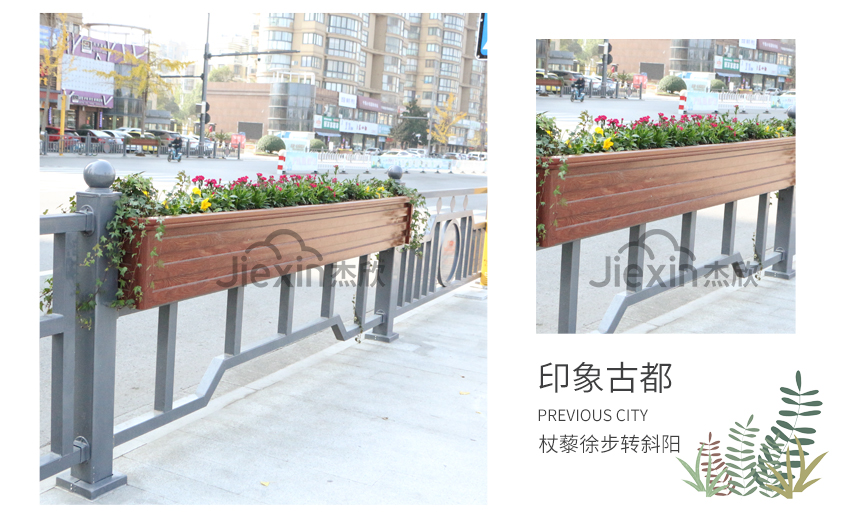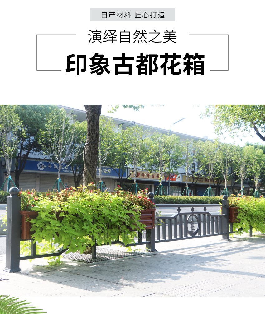 花箱护栏不仅可使用在道路上,也可以用于人行道,保障行人安全。