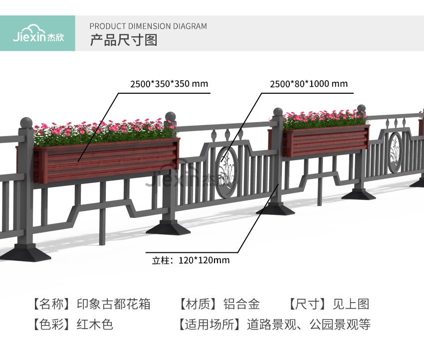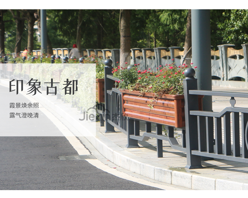 这款花箱护栏在设计元素中添加了地方特色,古老的宝塔凸显出城市的文化底蕴。