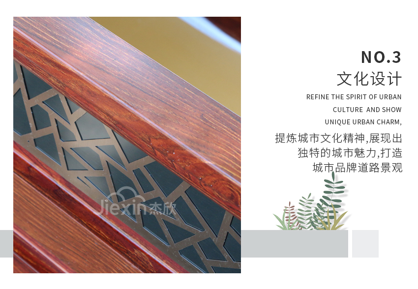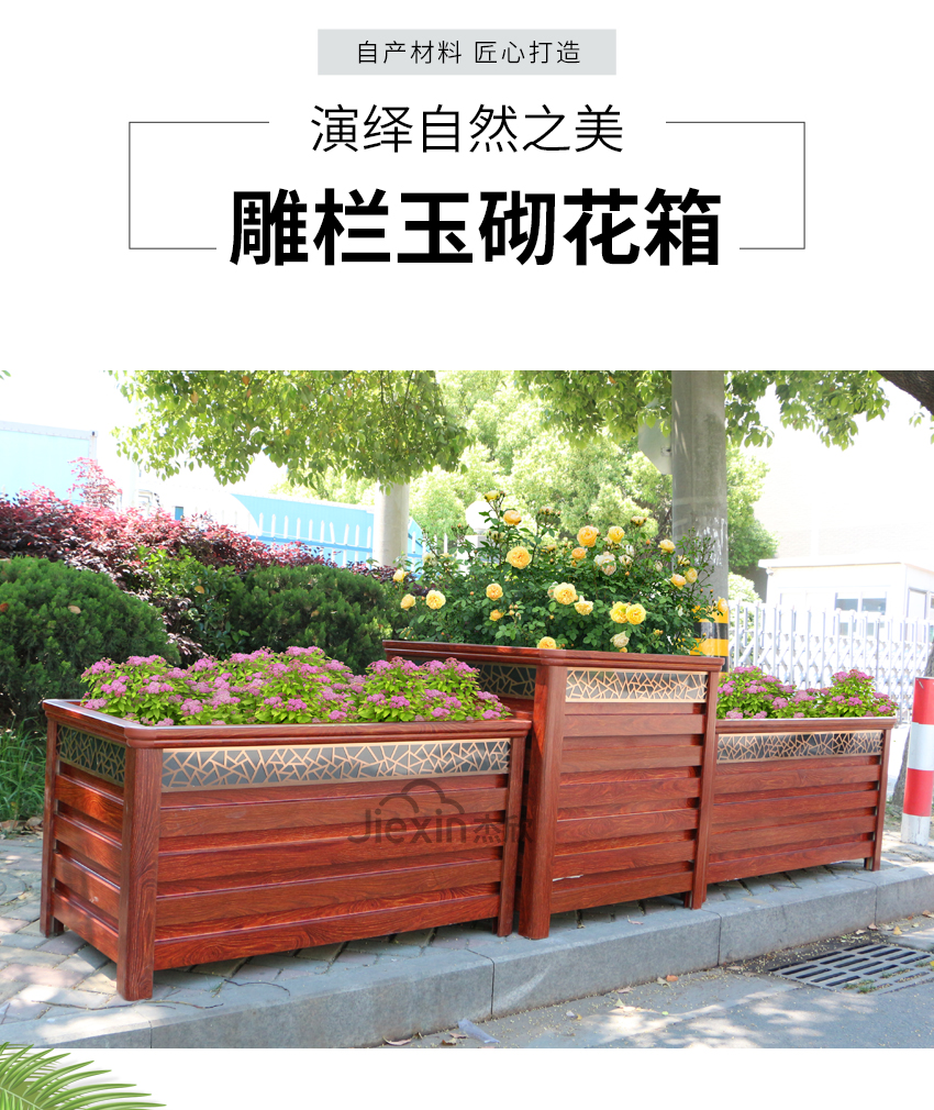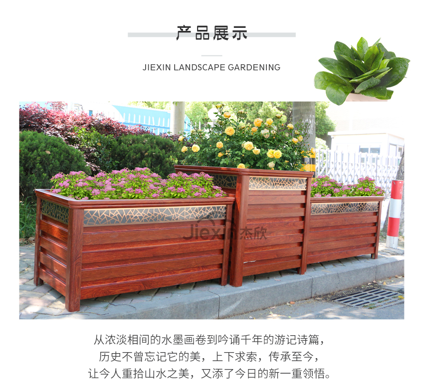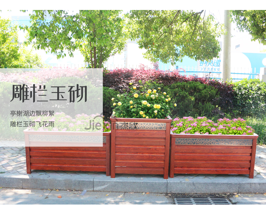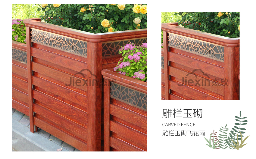 红木色铝合金花箱让人想到城市的文化、想到古城、朱门。