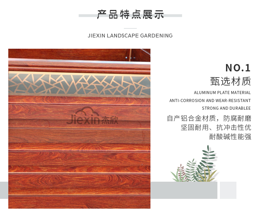 铝合金花箱的美感,在于木纹。木纹看似简单,却也有无穷变化。