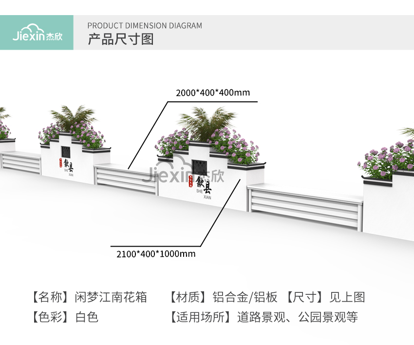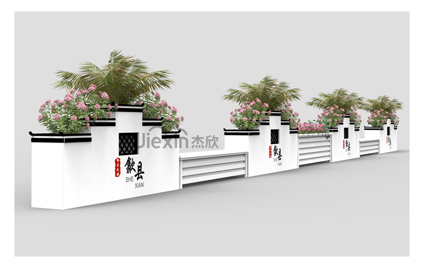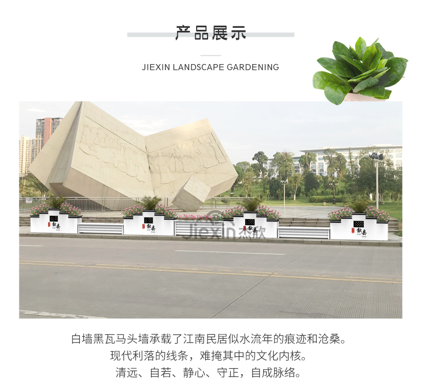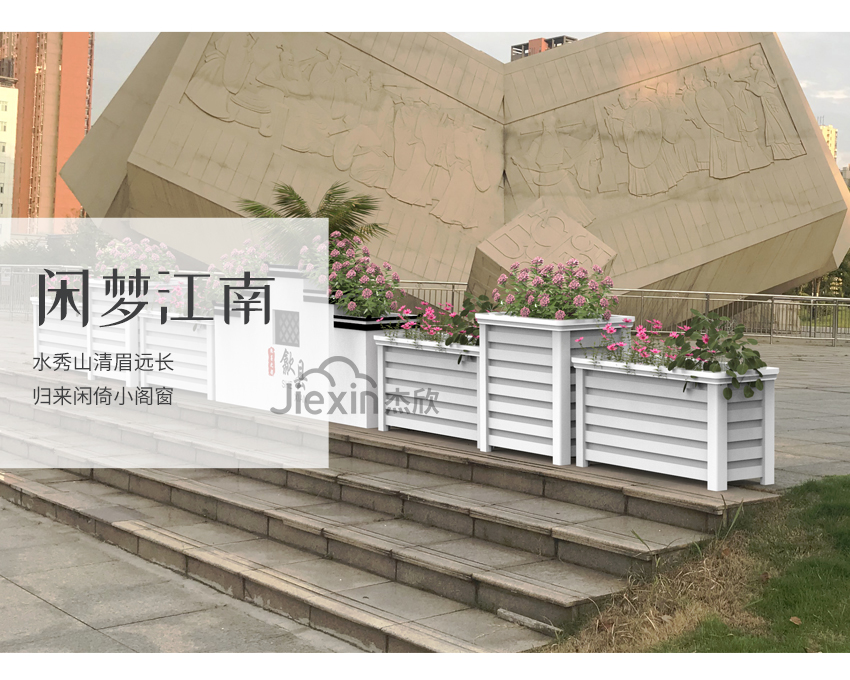 以江南文化为元素,设计出具有独特景观效果的花箱,衬托出城市的深厚底蕴。