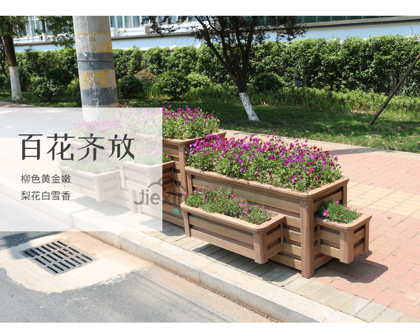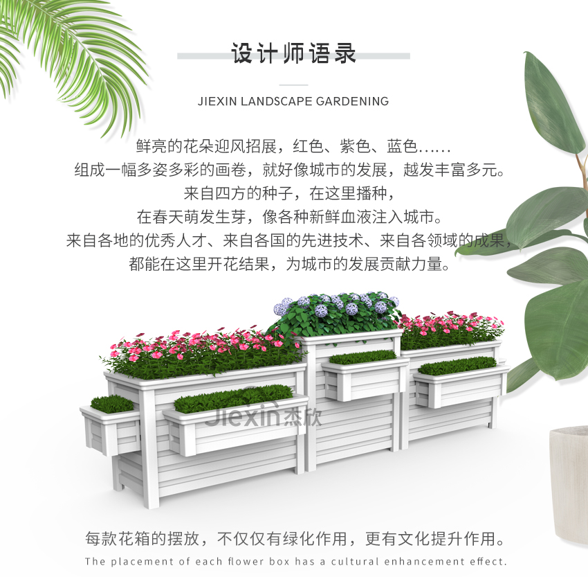 组合花箱的材质是铝合金,防腐耐磨、坚固耐用,能够在户外使用二十年。