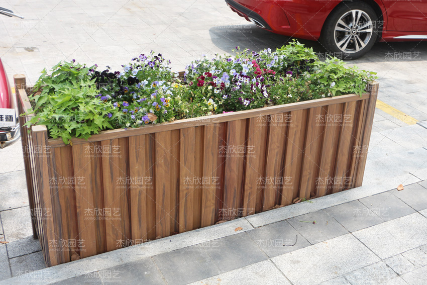 对于市政来说,防腐木花箱不太经用。市政花箱规格都很大,没有办法移动,所以常年暴露在露天环境中,非常容易磨损和破坏。一旦破损了,就很影响市容市貌。所以在市政花箱的选择上,防腐木并不适合。