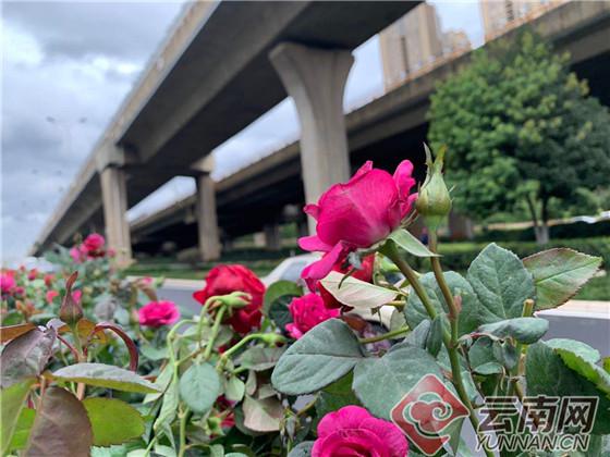 据了解,挂花美化的区域涉及二环高架16座立交的桥梁及上下匝道两侧。为了保证挂花效果,距离较近的立交之间或将实现连续挂设。二环整体挂花的长度将达到128公里,面积约3.8万平方米。通过连续挂设一体式花箱,在花箱内种植大月季花,实现将二环打造成为昆明的“城市花环”。