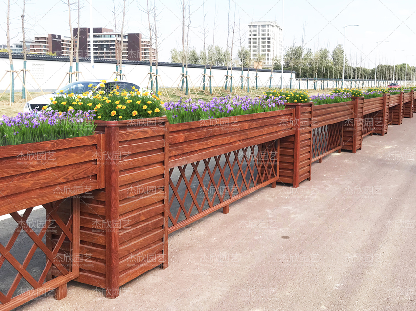 红木色花箱适合街道使用,红木色花箱和树木比较搭配,而且能够衬托出街道的历史感,也是众多人选择的原因。