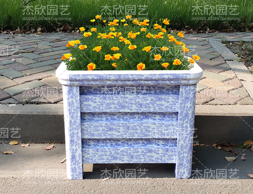 第一个是青花瓷花箱。这款花箱没有其他特别之处,青花瓷就是它的亮点。铝合金花箱的颜色集中在红白黄,青花瓷是非常少见。青花瓷覆膜的铝合金花箱,看起来就摆脱了木纹的敦厚感,呈现出非常优雅高级的气息。