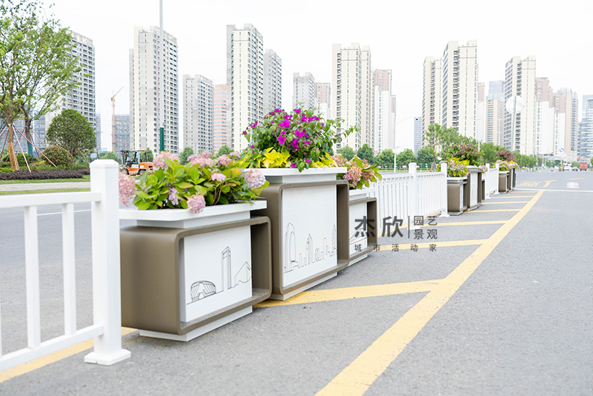 花箱采用铝板/不锈钢/镀锌板(可?。?,使用工业级材料打造城市专属花箱,防水防污防磨防撞,防腐性能优越,匹配城市街景新里程。