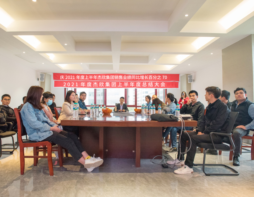 2021年7月6日,杰欣集团上半年度总结大会如期在江西、浙江、四川三地联动开启,回顾上半年杰欣发展历程,展望下半年企业远景。杰欣集团总经办、销售部、市场部、生产部及全体行政人员参加会议。