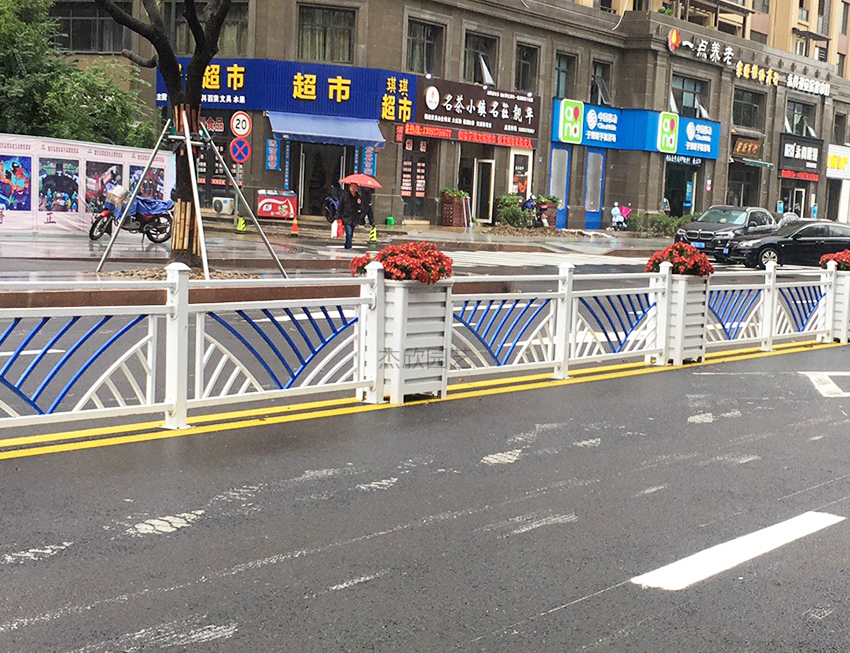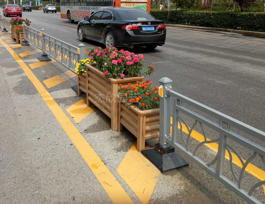 城市在发展,道路绿化的重点来到了道路隔离带?;ㄏ浠だ甘且豢钤谛扛只だ富∩?,添加花箱的道路产品。因此,花箱护栏很快运用到道路隔离上。