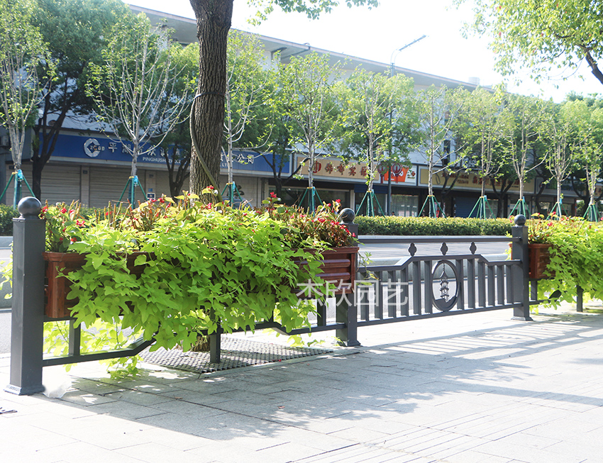 护栏花箱在城市道路上有哪些运用呢?Zui常规的护栏花箱是没有修饰的护栏花箱。如果对景观有要求,那么在护栏花箱上的选择上也会有所创新。比较常见的创新是护栏部分,护栏部分增加造型?;ㄏ渖系拇葱拢冉隙嗟氖怯锰?、花纹,富有地方特色的贴画内容和纹理呈现,展现出独特的城市道路魅力,表现丰富文化特色。
