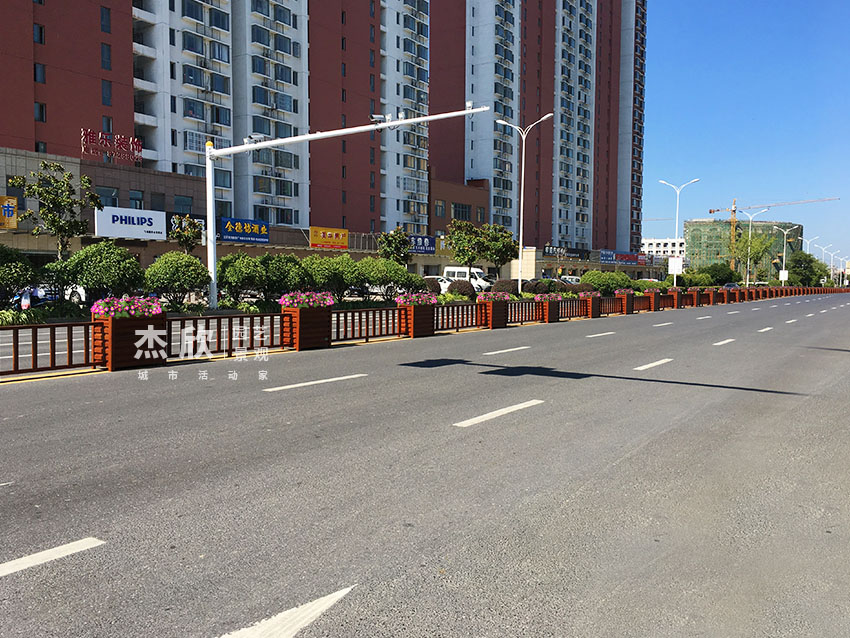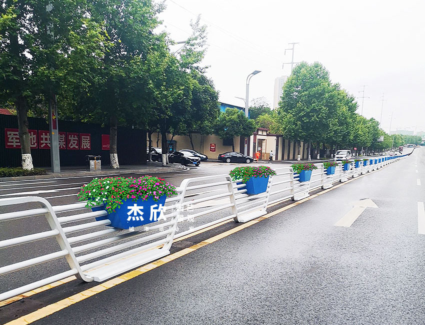 栏杆花箱是道路景观的主要产品。栏杆就是我们熟悉的锌钢护栏,锌钢护栏主要用在城市中央、机非隔离带。