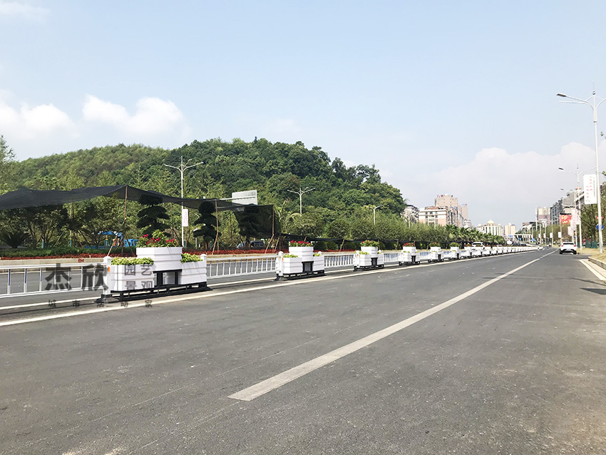 栏杆花箱款式可选,颜色多样,与城市景观相融合。