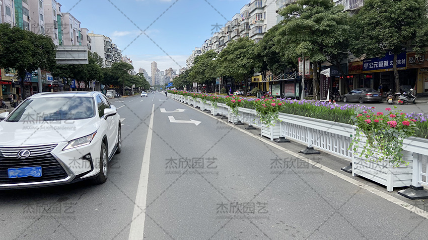 铝合金花箱护栏的尺寸可以定制,不同场景中使用的花箱长宽高不同。摆放在中央隔离带的花箱护栏,也有常规的尺寸选择。