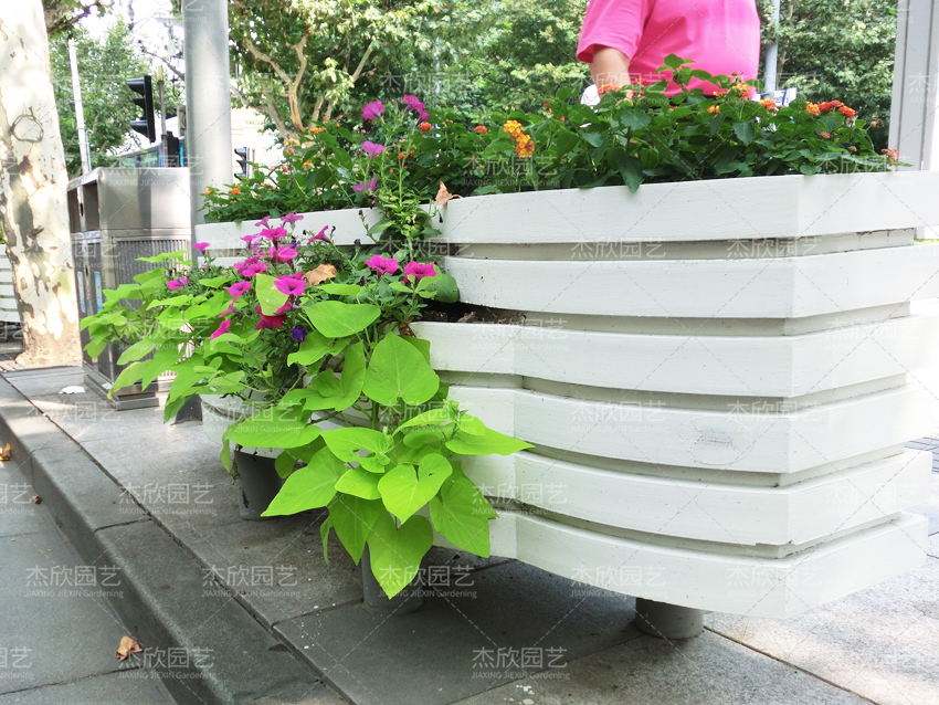 铝板花箱强度高、硬度高,防腐耐用这些性能都和铝合金花箱相近。铝板由于是从一整块板生产,造型会更多。铝板花箱的生产工艺更复杂,用料更多,价格也更贵。