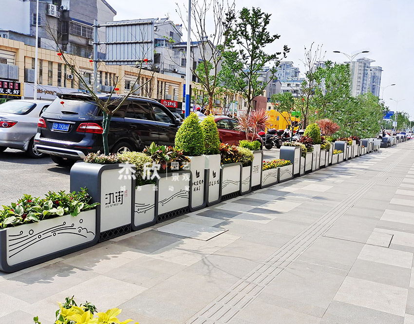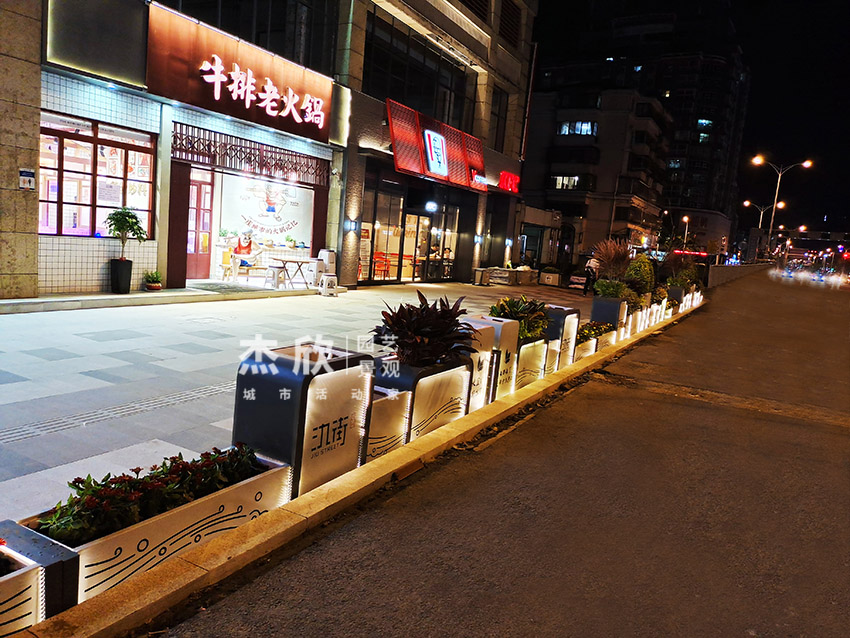 氿街街区景观以花箱和座椅构成,能够在场景中完成美化提升工作。山水元素作为此次方案的基地,用文化唤醒人们对宜兴历史的记忆。