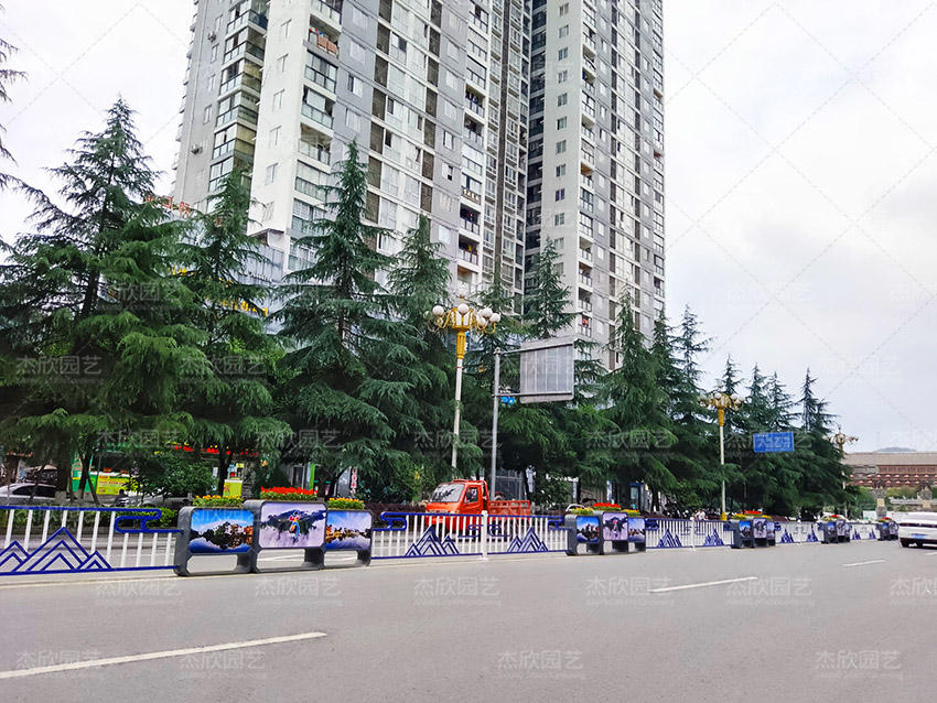 道路花箱护栏,既提供了百花的承载体,也匹配了城市道路景观的要求。