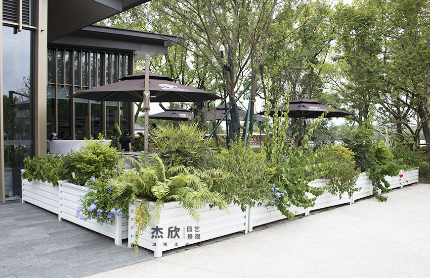 也为客户提供了较好的纳凉环境,也兼具了一定的私密性。花箱采用的是铝合金材质,可在户外使用二十年,免维护,是市政专用的花箱产品。