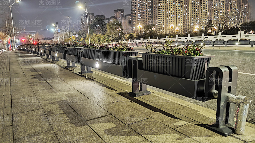 花箱方案选择的是现代风格,匹配城市风景。暖色灯光映照出温和的人间烟火。