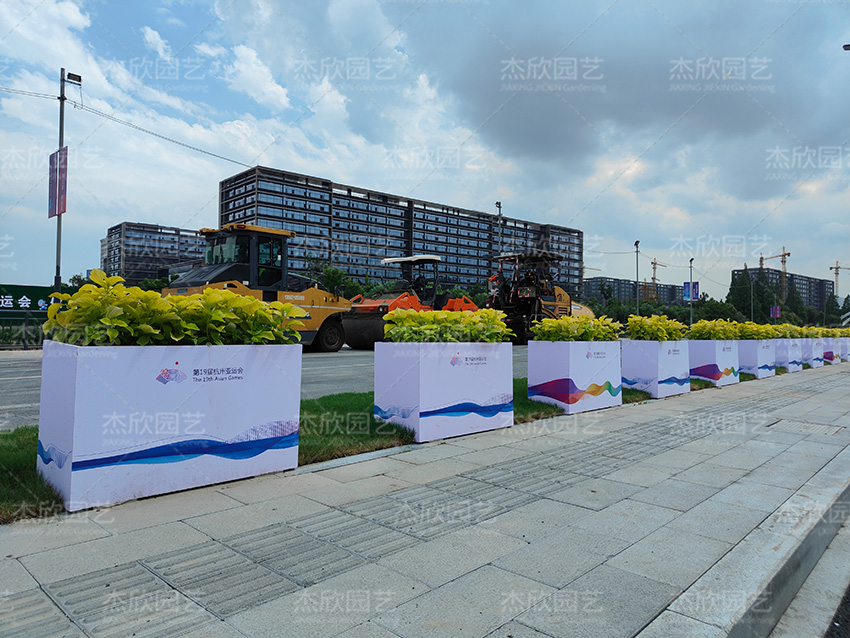 箱体由PVC构成,外观图案以UV打印,栽植绿卉,勃勃生机、清爽袭人。一路望去,亚运气息扑面而来。