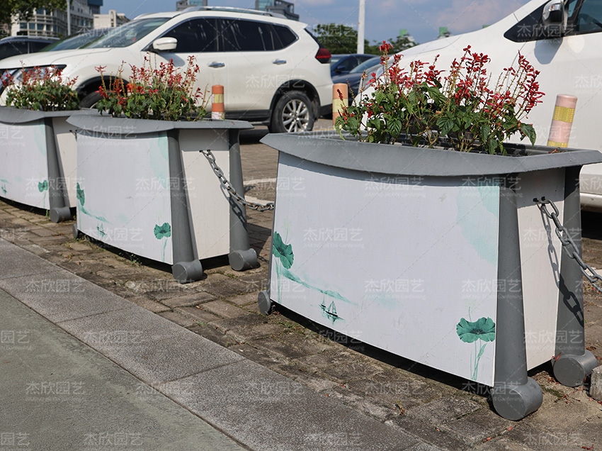 花箱外观仿古设计,更贴近了古典气息,使得宁波公园更为生动和谐。
