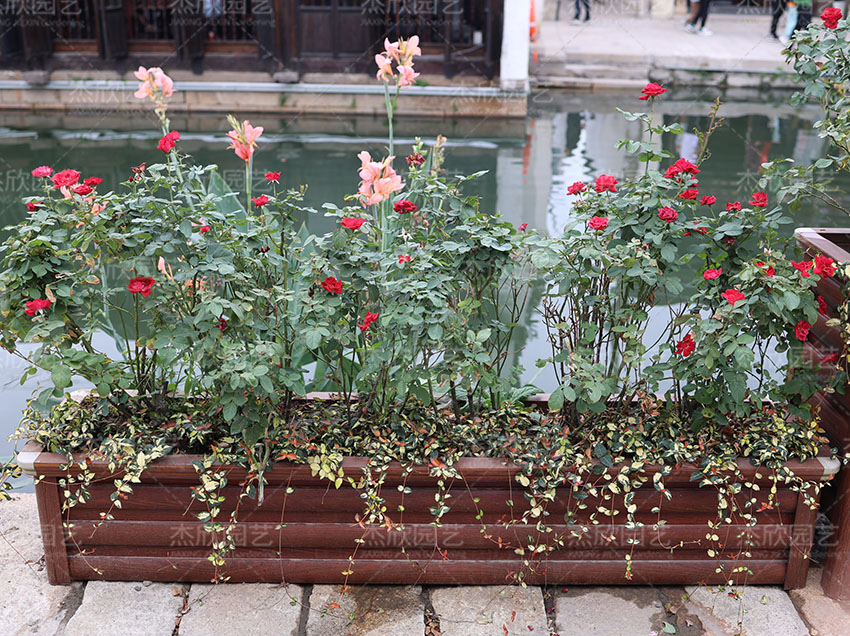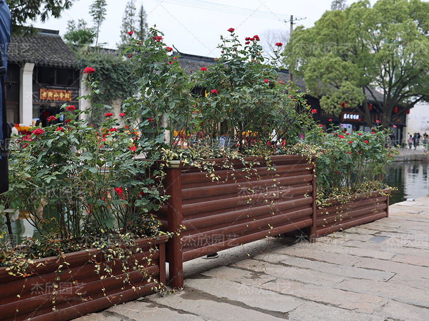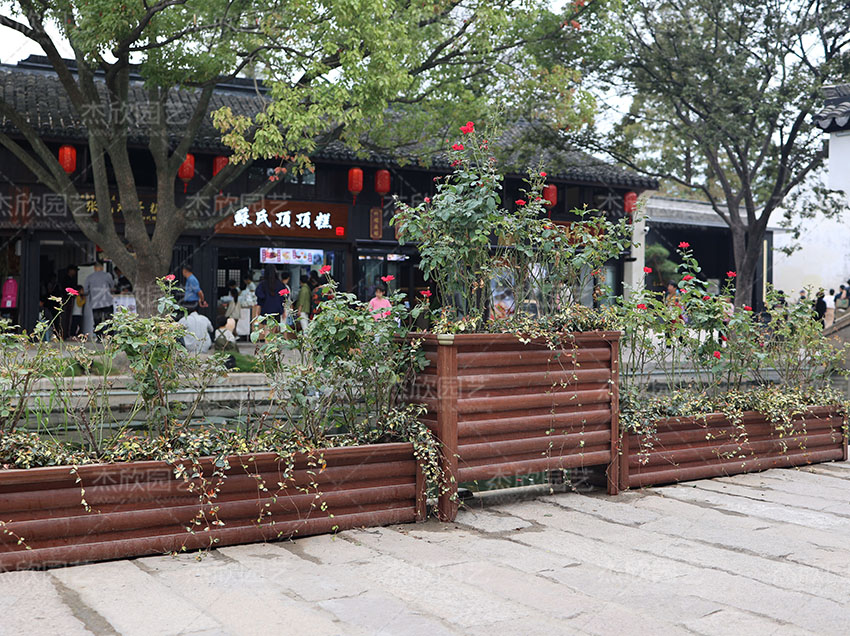 红木色铝合金花箱的使用更为广泛,可使用于多个场景,提升景观效果更明显。
