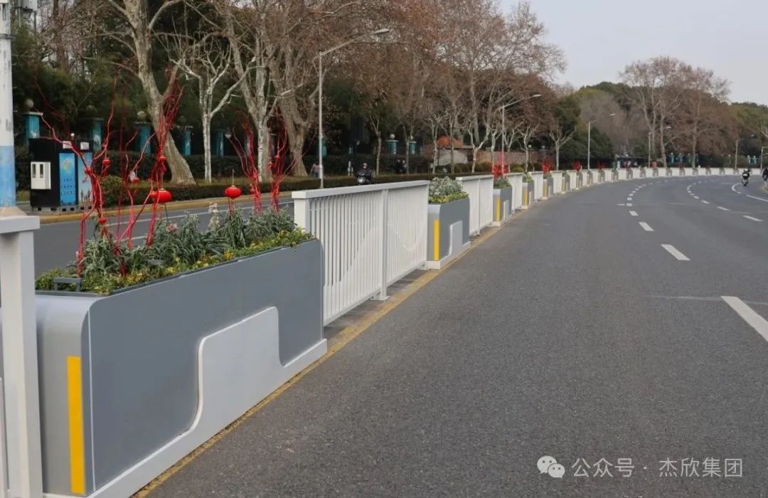 花箱与护栏组成了一组乐曲,在城市风景里演奏,仿佛音符流传出来。虹桥路隔离花箱不仅改善了城市景观风景,而且提升了花园城市水平。