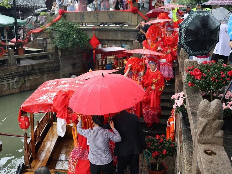 为筹备水乡婚典,古镇将河道两岸的重新焕新,古镇内部的草花重新栽种,呈现一个生机盎然、喜气洋洋的千年古镇。