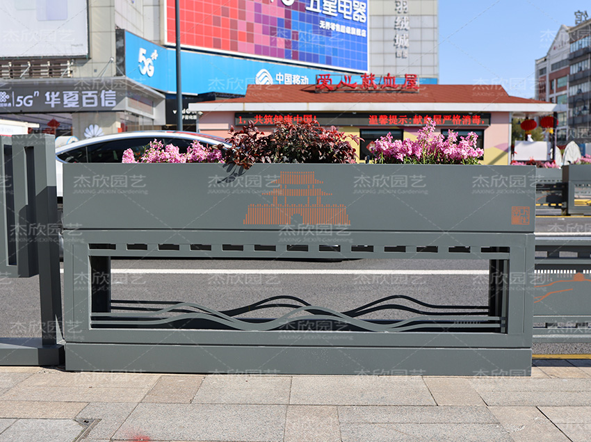 花箱的主体设计贴合城市,韵味自然,巧夺天工。