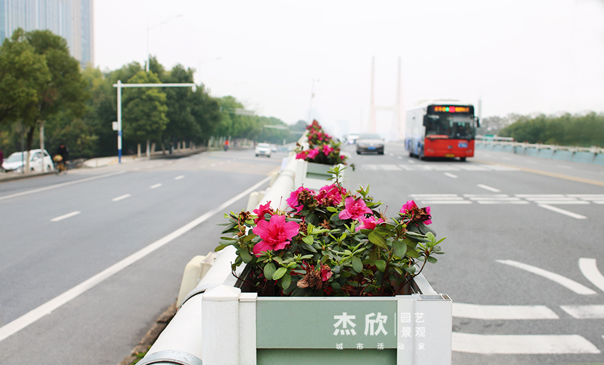 此次老福山立交桥绿化方案,由杰欣设计团队负责,通过对场景绿化需求、路况交通的分析,采用点-线-面的花箱构思,以单个花箱为起点,串联起桥面绿化景观,为老福山立交桥构建立体的绿化美化场景,旨在提供高效、便捷、安全的道路风景。