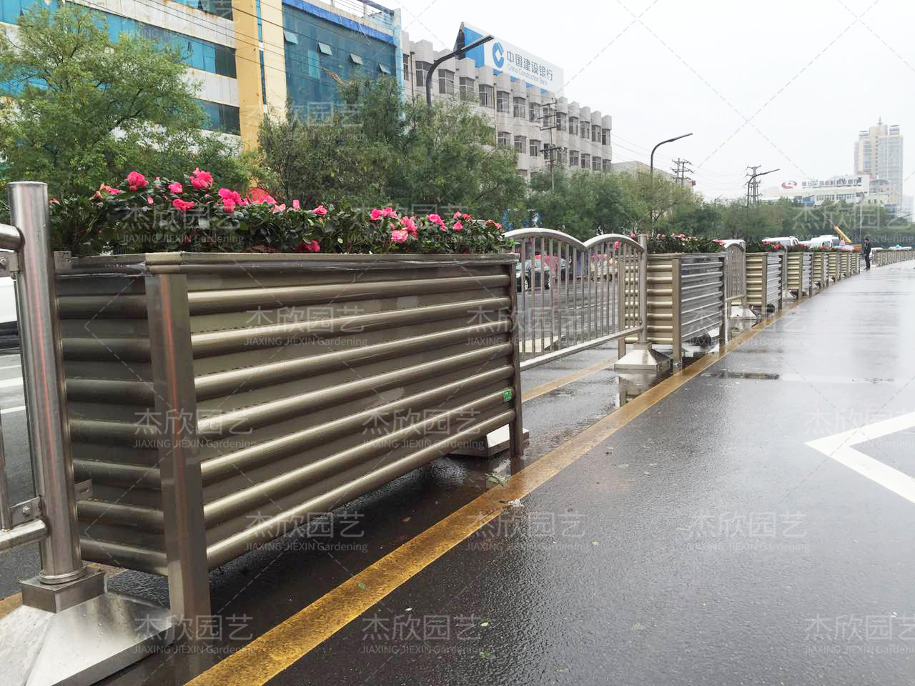 另一方面护栏有调解花箱疏密的作用