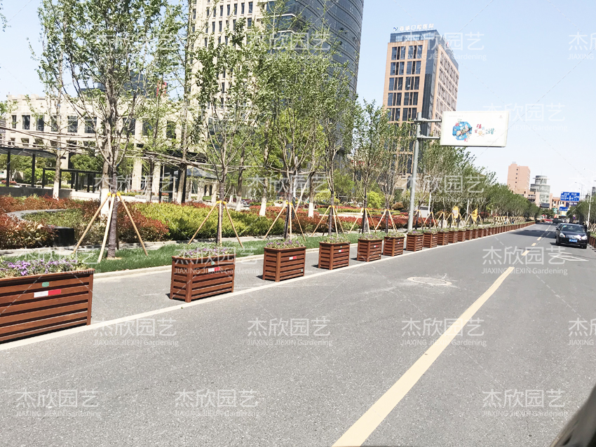 道路花箱起到隔离、美化作用