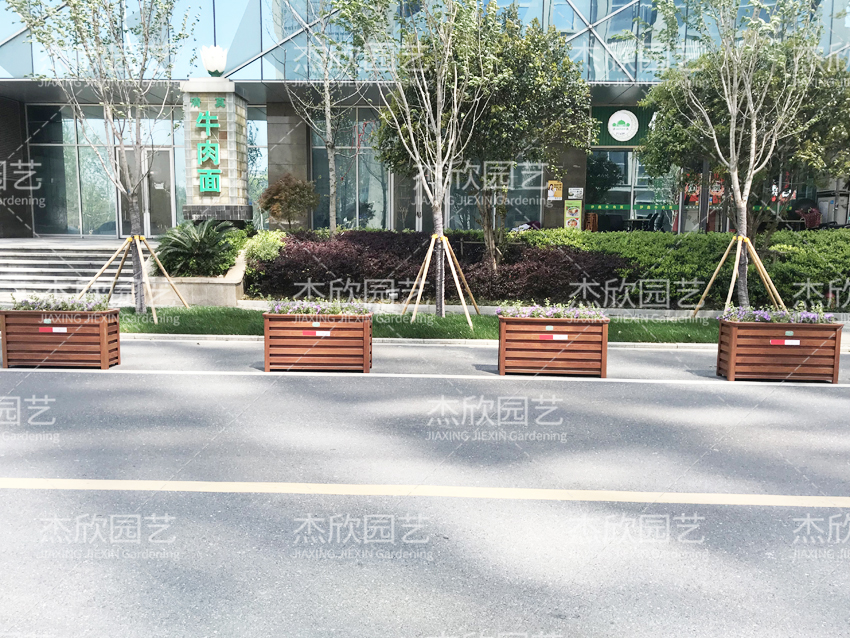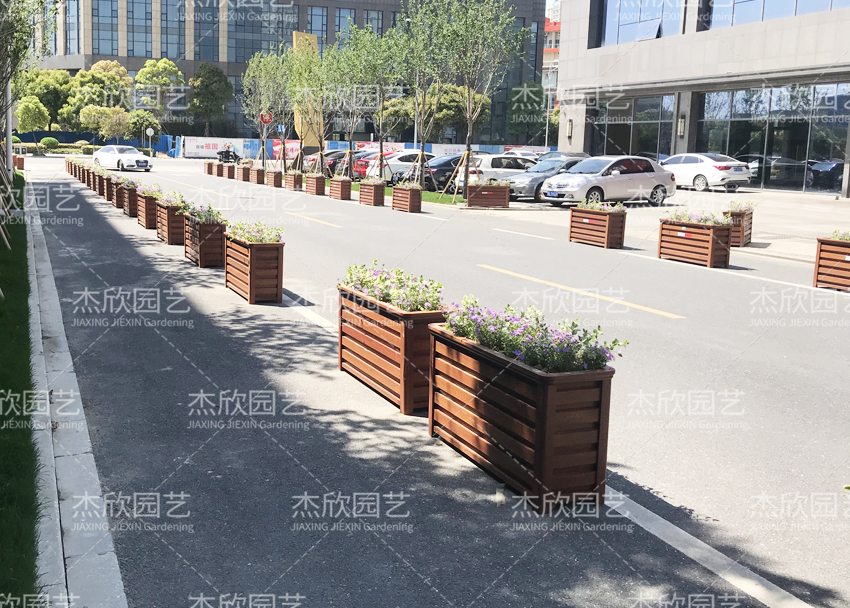 红木色花箱,融合景观