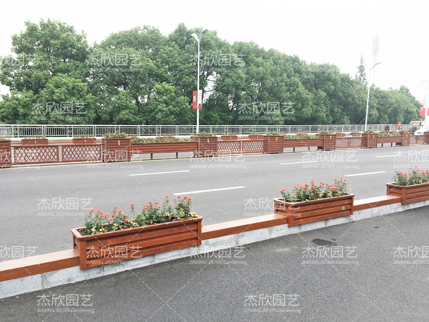 红色木纹花箱,景观效果好