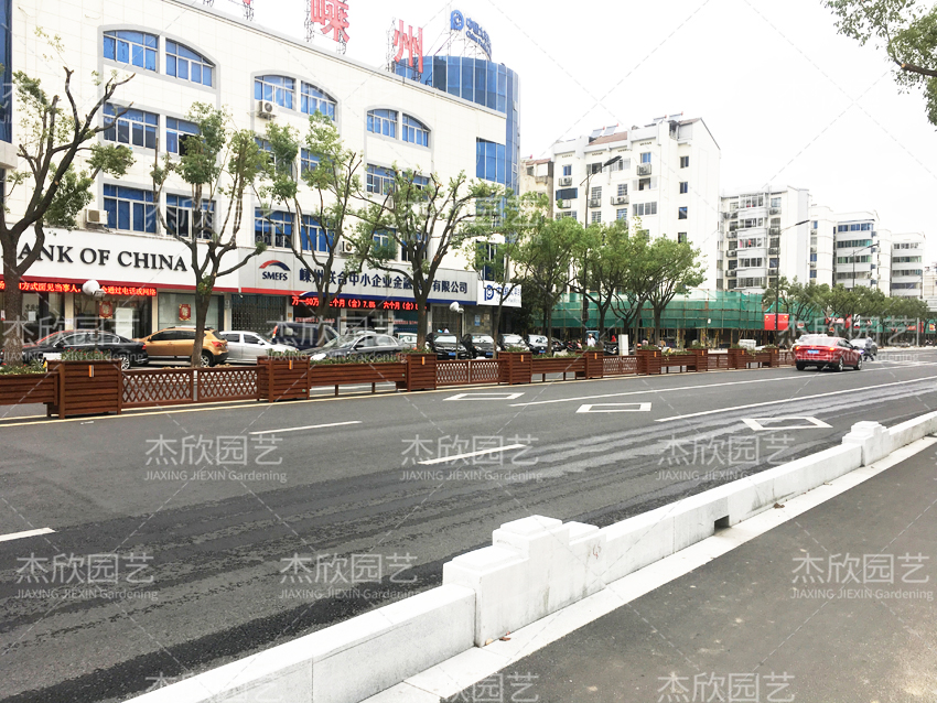 景观效果:红木色花箱,和环境相融合,自然清新,给道路增添魅力。