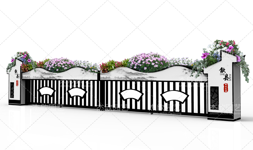 汲取徽派建筑艺术精华,来制作现代道路花箱,既保留了古典的韵味,又贴合现代审美。