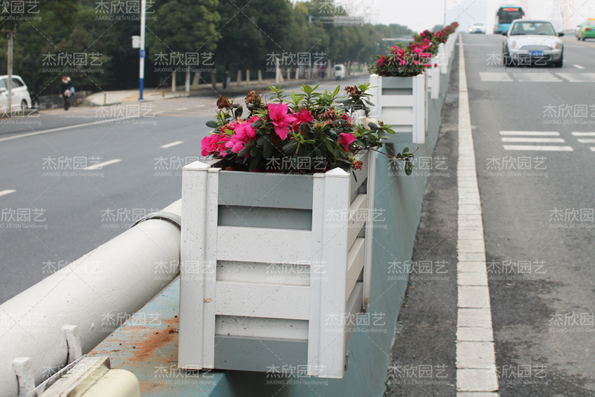 桥梁中央隔离花箱主要为了隔离车道,同样采用铝合金材质,高强度防撞,红木色花箱搭配绿植,景观效果好。