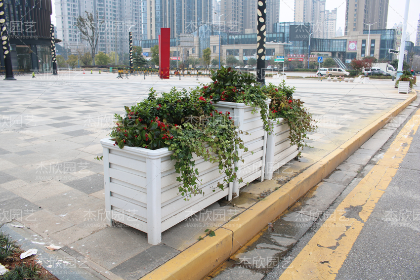 而商业广场则比较适合白色的广场花箱,更有现代感。商业广场不同于城市广场,现代感更加强烈,时尚感也更强烈。白色广场花箱看起来干净整洁,对于街景也能起到提亮的效果。