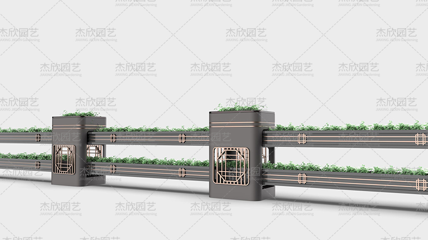 园林是中国建筑美的杰出代表,也是中国人对人居环境的诗意阐述。园林寄托着人们对美好生活的向往。园林艺术在当代设计中也屡见不鲜,并深受喜爱。这组道路花箱将园林之中的窗格艺术之美融入其中,取其神,去其形,用现代手法表现出祥瑞之意。