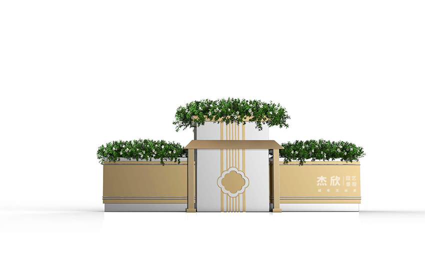 东方记忆花箱,将传统建筑融入到城市花箱。花箱作为载体,反映城市精神面貌。首都北京,历经沧桑,也包含岁月沉淀,令全国人民心驰神往?;ㄏ渲魈宀糠质侨”本┓秸慕ㄖ?,融入了现代的审美,在色彩上着以暗金、白金,呈现出低调、沉稳的气质。