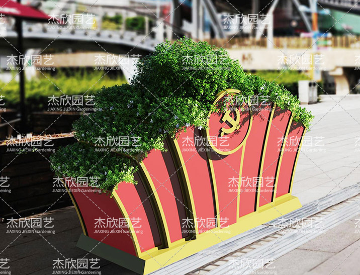 党旗花箱山形外观,一方面象征了前进道路的崎岖艰险,另一方也说明了会当凌绝顶,一览众山的道理。只有历经艰险,勇于抗争,不断进取。党旗70周年花箱,深入挖掘七十周年华诞的精神内涵,彰显了伟大祖国和人民创造美好未来的坚定决心,召唤出了人们内心的热忱。