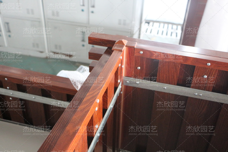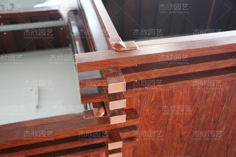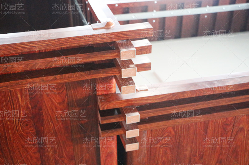 花箱内部细节展示:侧板用榫卯结构固定,不锈钢螺丝加固
