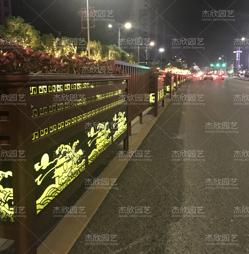 发光花箱不仅可以点亮街道,更能提升景观效果。发光花箱的光柔和不刺眼,光源透过亚克力板,醒目不亮眼,舒适效果。从城市景观的深层上说,融入了城市特色的发光花箱,具有城市文化宣传的功能。