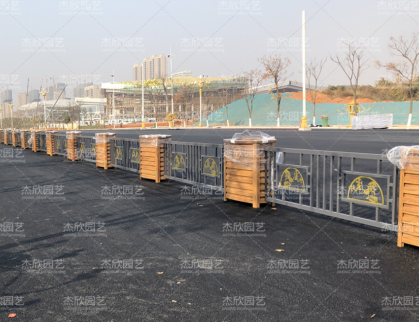 这款花箱护栏,用于中央道路隔离,采用铝合金材质,坚固耐用,防腐耐磨,提升道路绿化质感。