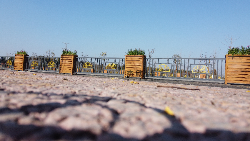护栏部分融合文化要素,展现出独到的文化景观。花箱和护栏结合,绿化与美化一体。