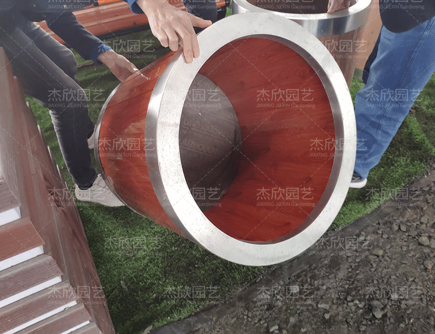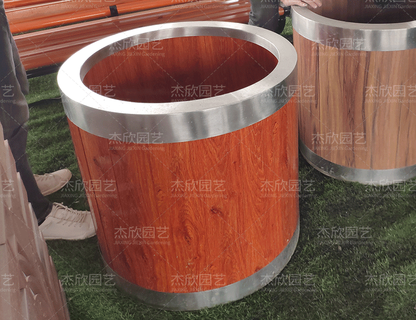 圆形花箱好看在于将木材的硬视觉软化,呈现出更好看的造型