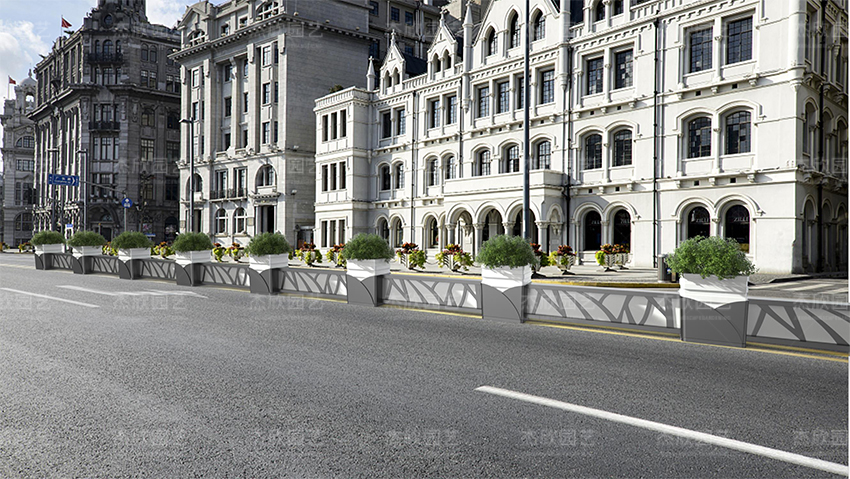 现代玉兰花箱,将美丽大方的玉兰形象融入花箱设计,表现高雅的艺术美感。